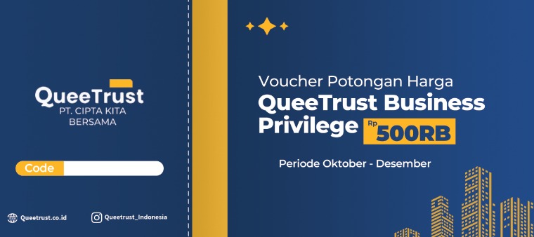 - Kupon dapat digunakan sebagai potongan langsung sebesar Rp500.000 pada saat klien menyepakati harga layanan bersama QueeTrust untuk layanan yang tercakup dalam program ini.